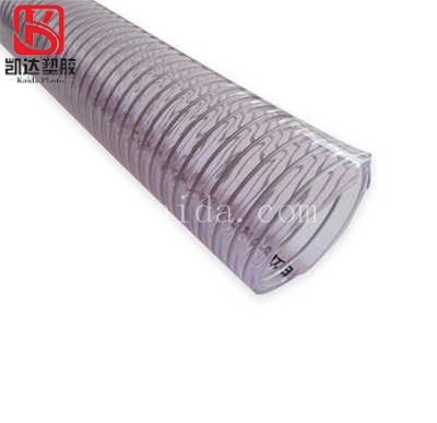 本产品为内嵌钢丝骨架的PVC软管,该产品质轻、透明(能看到管内物体的流动)、耐侯性佳、弯曲半径小、耐负压能力好。在真空及高压状态下能保持原形。表面可增加彩色标志线,更加美观。