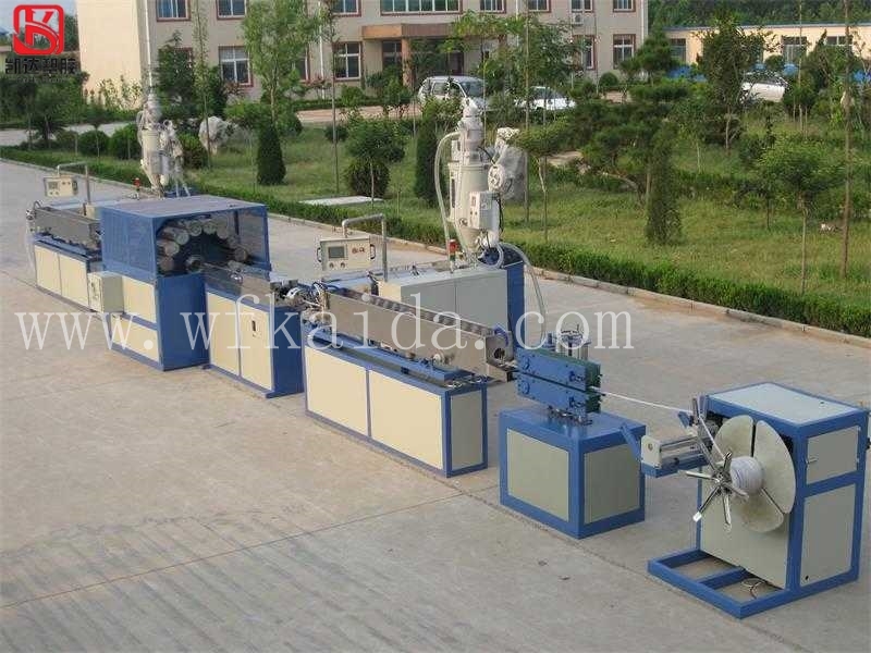 该机组是生产PVC纤维增强软管(又称PVC网管)的专用成套设备,PVC纤维增强软管质优,透明,耐压,抗拉伸,耐酸碱,耐腐蚀外形美观,柔软轻便,经久耐用。可广泛应用于食品、卫生行业,在-5度-65度范围内是空气、水、煤气、油类及其他液、气的良好管道。